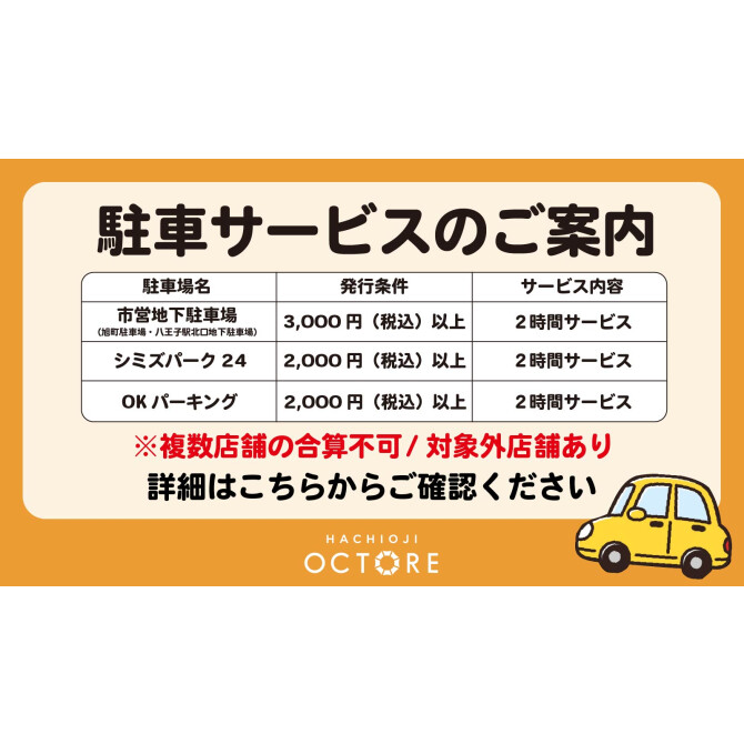 ただし、下記の店舗につきましては駐車サービス対象外となりますのでご注意ください。