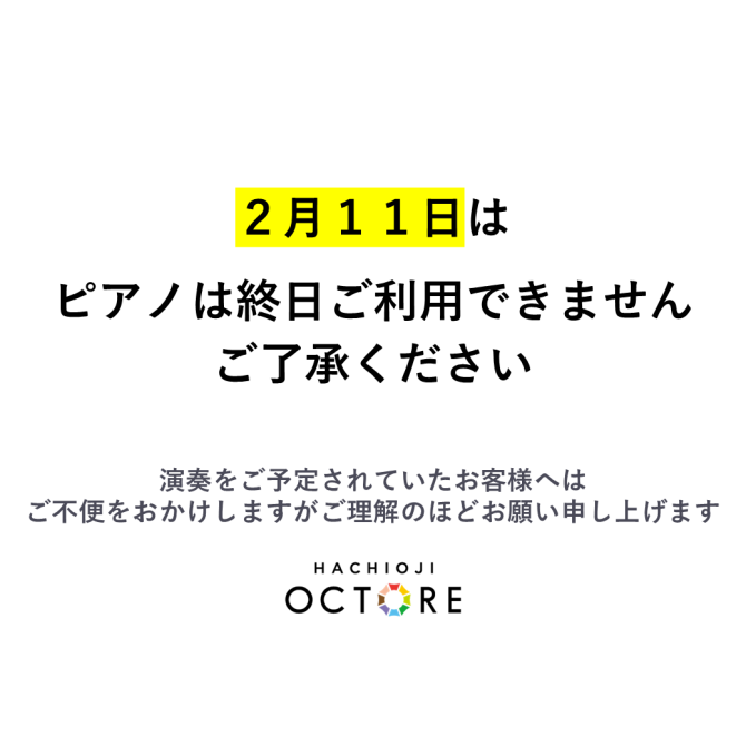 2/11(水)は、1階ステージのピアノは終日ご利用できません。