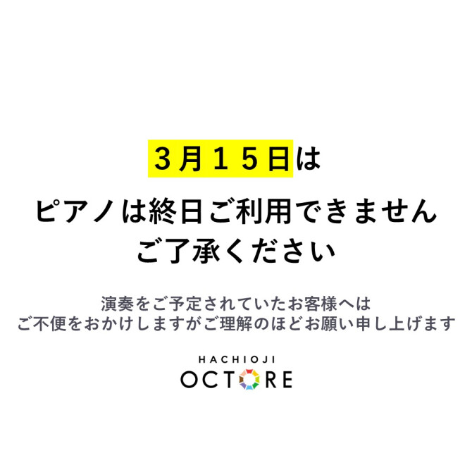 3/15(日)は、1階ステージのピアノは終日ご利用できません。